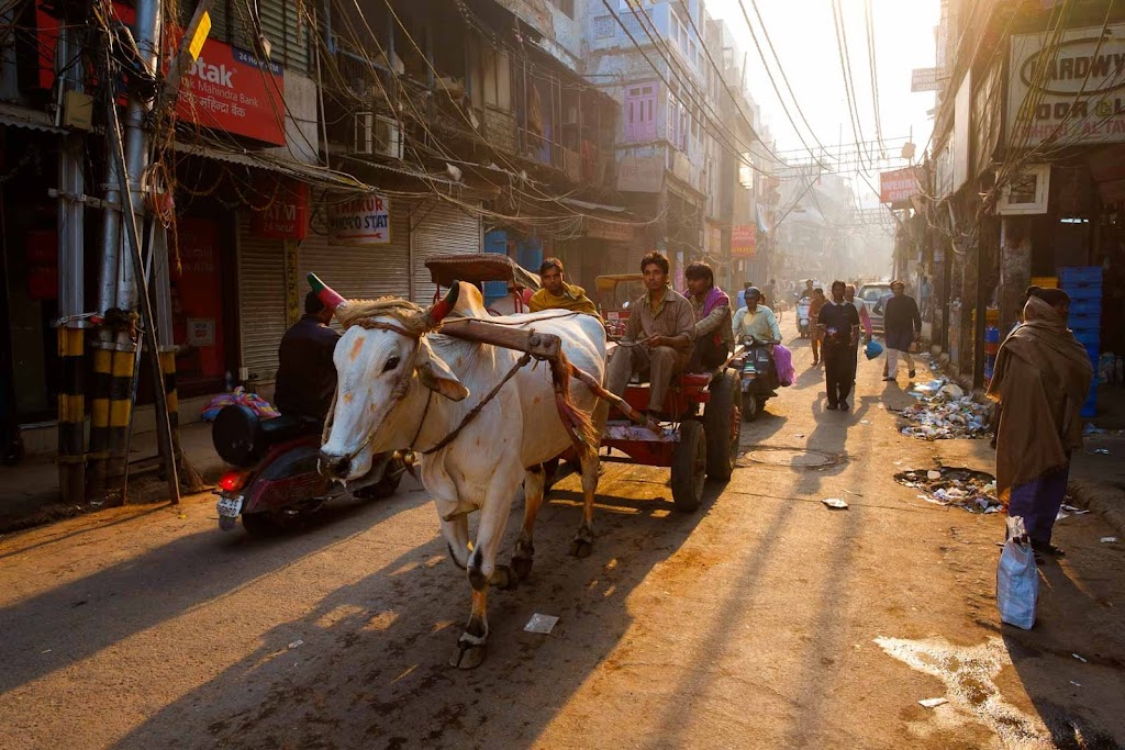 I am suspicious of White's nostalgia for old Paris. I have no doubt it was great for a potent shot of absinthe and an epic case of the clap, but should we really yearn for days of dirty water, trash on the streets, and rodent-born plagues? But then here I am strolling down the Chowri Bazaar when I could be other places, stepping over piles of garbage, inhaling alternating breaths of perfume, spices and urine, sharing the narrow street with cows, horses, goats, rickshaws, cars, throngs of people, and I'm dumbstruck by what Walter Benjamin described as a "landscape built of sheer life."